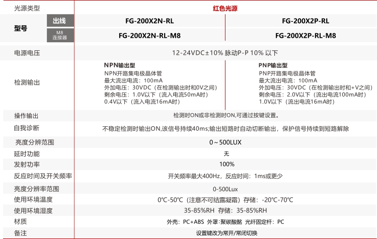 ECOTTER 外來光源檢測光纖傳感器 FG-200X2N-RL 可以對所有光源進(jìn)行檢測,而不僅僅是對傳感器自身發(fā)出的光進(jìn)行檢測,在工業(yè)自動化的應(yīng)用中,可以檢測手機(jī)屏是否正常亮起,電子產(chǎn)品的指示燈是否正常等檢測。