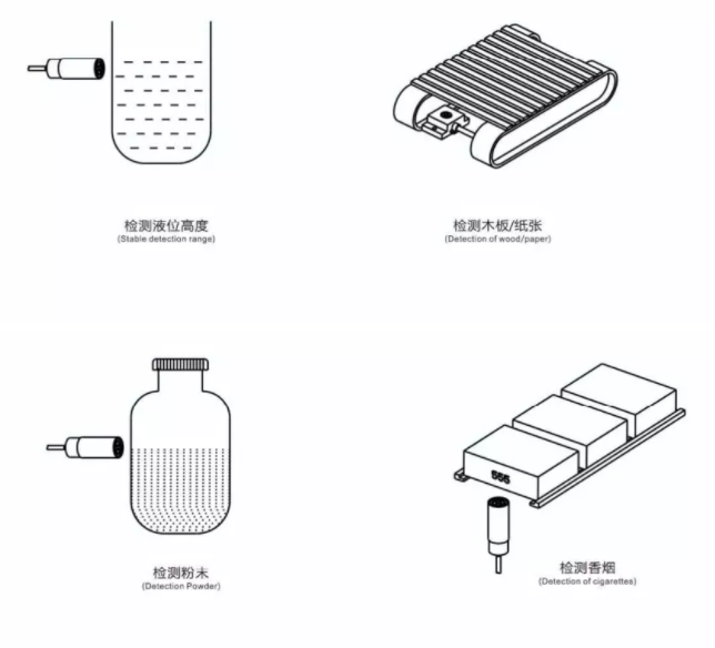 這款傳感器的外觀是圓型帶螺紋的,方便安裝。根據其原理,可以用來檢測多種材質的物體,金屬、亞克力板、玻璃、液體、木頭等;可以應用在多個場景。