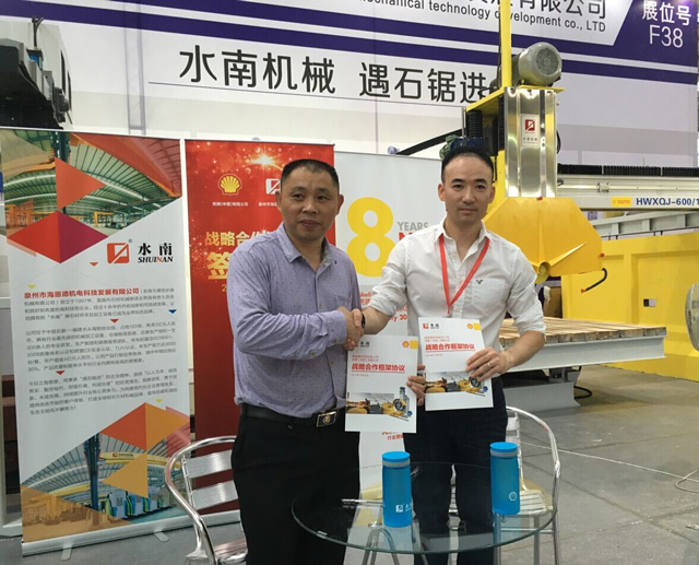 2015年11月8日,我司與殼牌正式簽署戰(zhàn)略合作協(xié)議,雙方就技術(shù)合作、品牌共建、售后市場共同開發(fā)與客戶服務(wù)等方面達(dá)成高度共識,致力于為廣大石材機(jī)械客戶提供更好的售后服務(wù)。 石材機(jī)械行業(yè)設(shè)備工作條件苛刻,重載荷、高粉塵環(huán)境對設(shè)備維護(hù)保養(yǎng)與潤滑油品都提出了很高的要求。通過提供優(yōu)質(zhì)的潤滑油產(chǎn)品,以及專業(yè)的售后服務(wù),同時不斷提升客戶在設(shè)備維護(hù)方面的水平,水南與殼牌公司將共同為行業(yè)用戶創(chuàng)造更多價值。 通過雙方的深入合作,水南與殼牌將充分發(fā)揮在各自領(lǐng)域的技術(shù)及資源優(yōu)勢,為客戶提供更加可靠的產(chǎn)品和專業(yè)的服務(wù)。在潤滑油品應(yīng)用與管理及設(shè)備運(yùn)行維護(hù)等方面加強(qiáng)與客戶的溝通協(xié)作,為客戶提高管理效益,降低運(yùn)行維護(hù)成本,帶來更多價值。