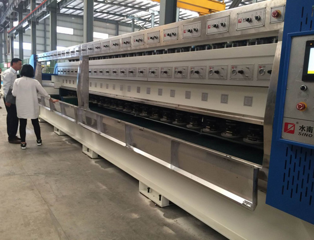 近期,泉州電視臺以“石材行業(yè)里的轉(zhuǎn)型升級”為主題,走訪多家石材行業(yè)的龍頭企業(yè),旨在了解大環(huán)境下的企業(yè)動態(tài)。作為國內(nèi)規(guī)模較大的石材機械生產(chǎn)公司,我司副總經(jīng)理陳鵬奇接受了記者的采訪。 陳總表示,在國際市場情況低迷,國內(nèi)石材行業(yè)產(chǎn)能過剩的大環(huán)境下,企業(yè)能做的就是從自身出發(fā),將生產(chǎn)加工各方面進行優(yōu)化升級,形成標準化精加工流水線的生產(chǎn)模式來突破自身瓶頸,從而獲得更高的市場占有率。同時,陳總還向記者介紹了優(yōu)化升級后的兩款新機型——全自動連續(xù)磨機、高效數(shù)控組合鋸,均為公司引進國外先進技術(shù),自主研發(fā)設(shè)計的新產(chǎn)品,集高效、節(jié)能、穩(wěn)定、環(huán)保于一身,讓客戶僅以進口設(shè)備三分之一的價格就能買到擁有國際行業(yè)標準的機臺,真正實現(xiàn)石材工業(yè)制造的國產(chǎn)化!
