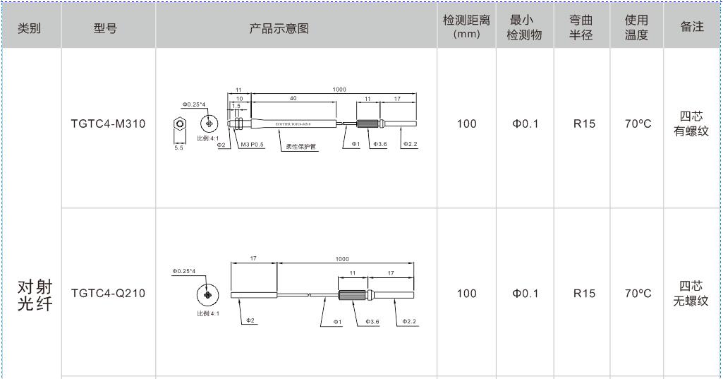 首頁 > 產(chǎn)品中心 >>傳 感 器 >> 光纖傳感器 >> 四芯系列光纖