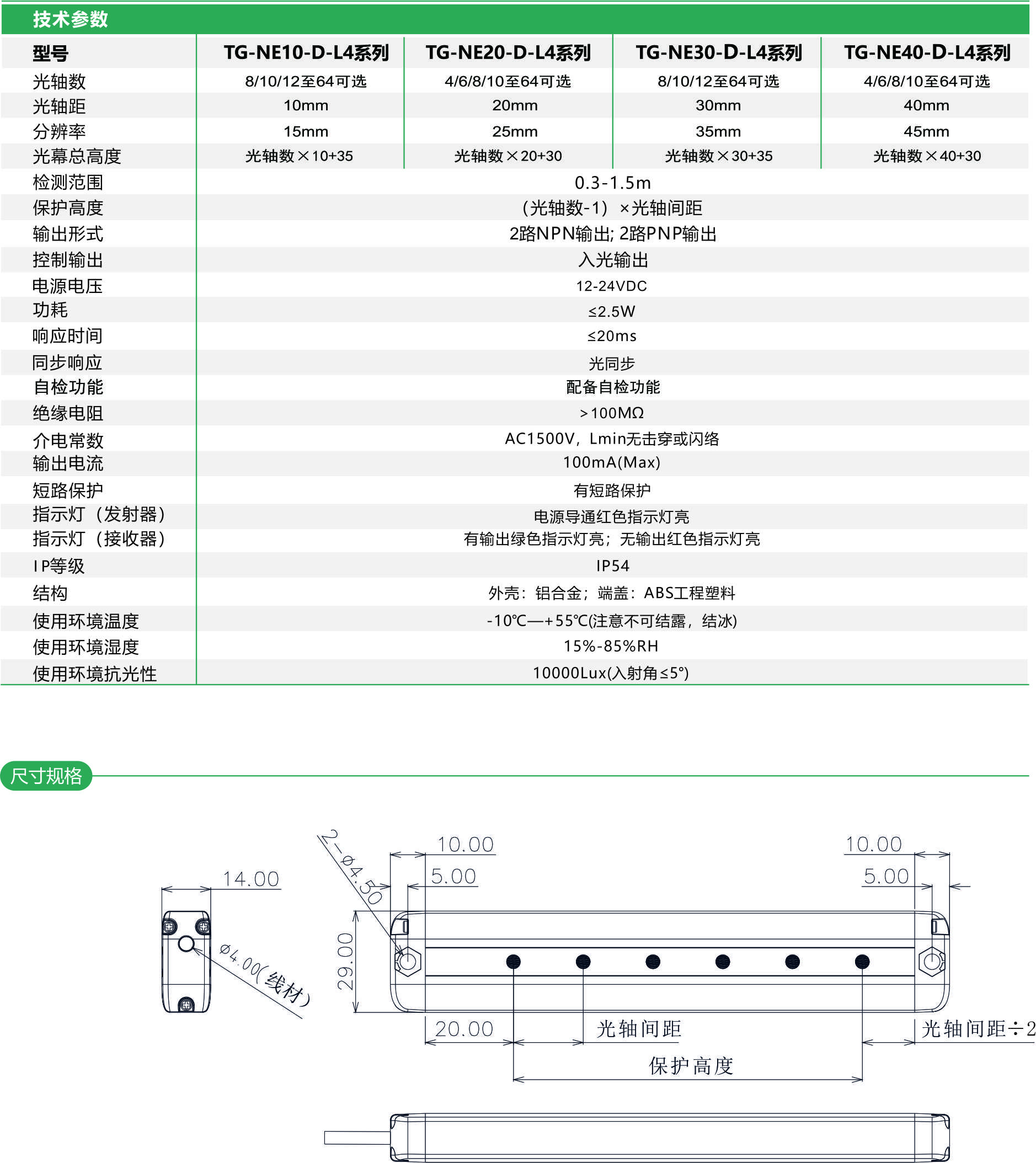首頁 > 產(chǎn)品中心 >>傳 感 器 >> 安全光幕 >> 四級安全光幕超薄型TG-NE-D-L4正面對射
