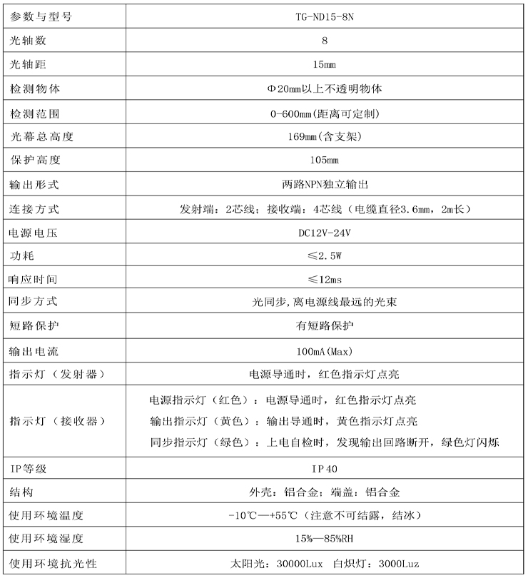 四級(jí)安全光幕超薄型TG-ND15-8系列