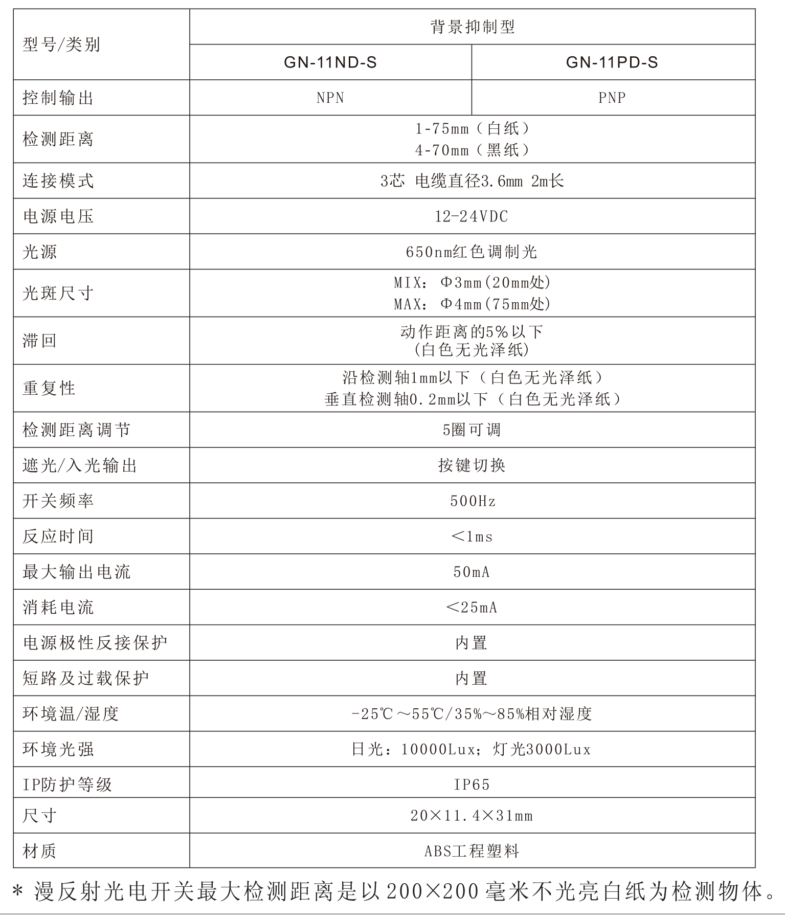 背景抑制光電開關(guān)GN-11D-S