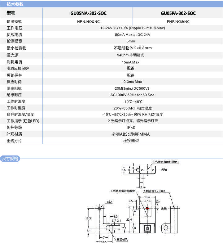 槽型光電開關(guān)GU05-302-SOC