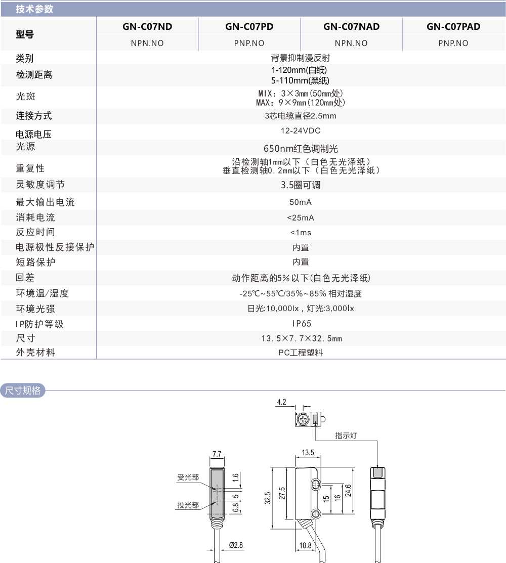 小方型BGS光電開關(guān)GN-C07D